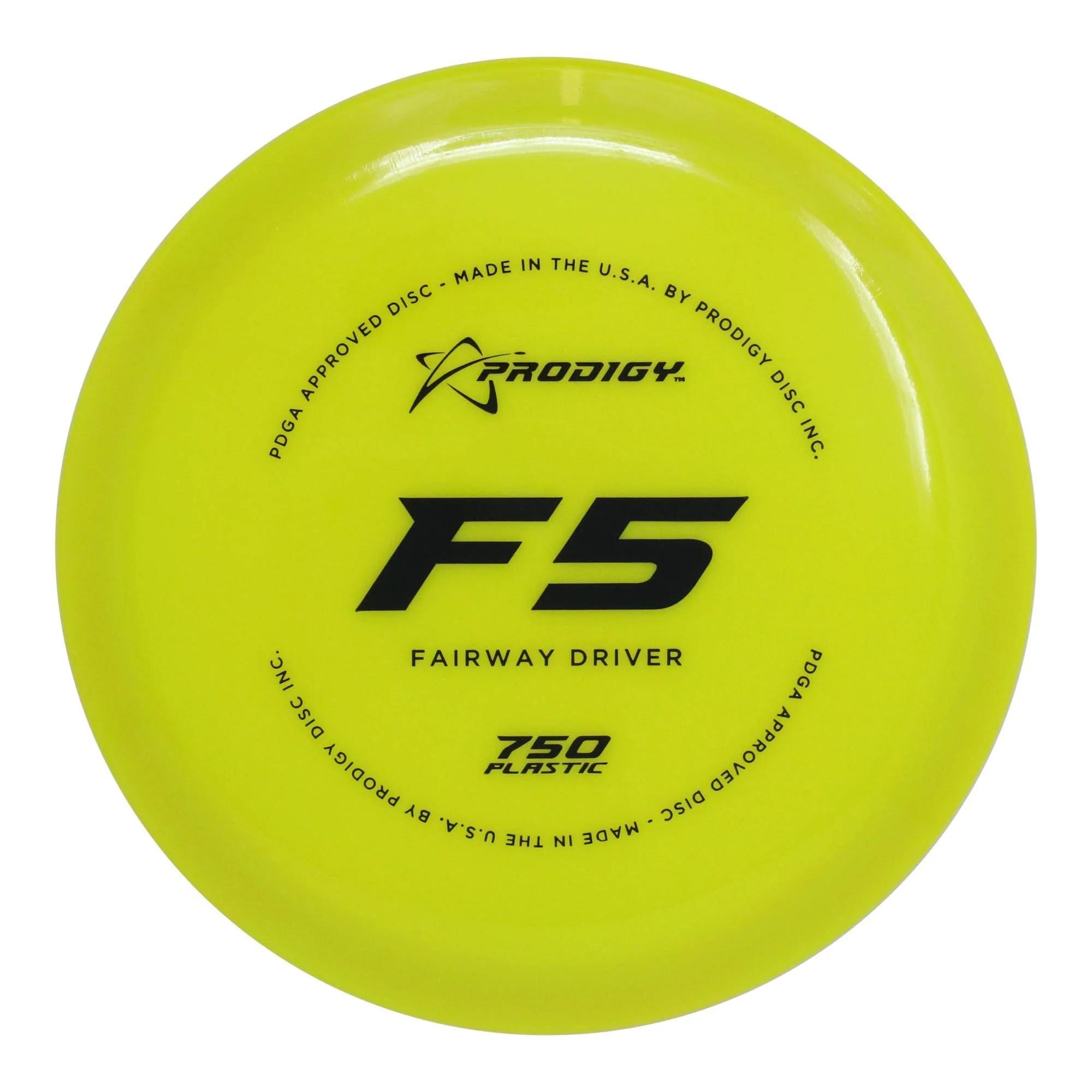 The Prodigy Disc F5 is a high speed, stable to under stable fairway driver. It is designed for all skill levels and flies extremely far and incredibly straight. The F5 will turn up slightly when thrown hard it will go into a long glide before finishing gently to the stable side.