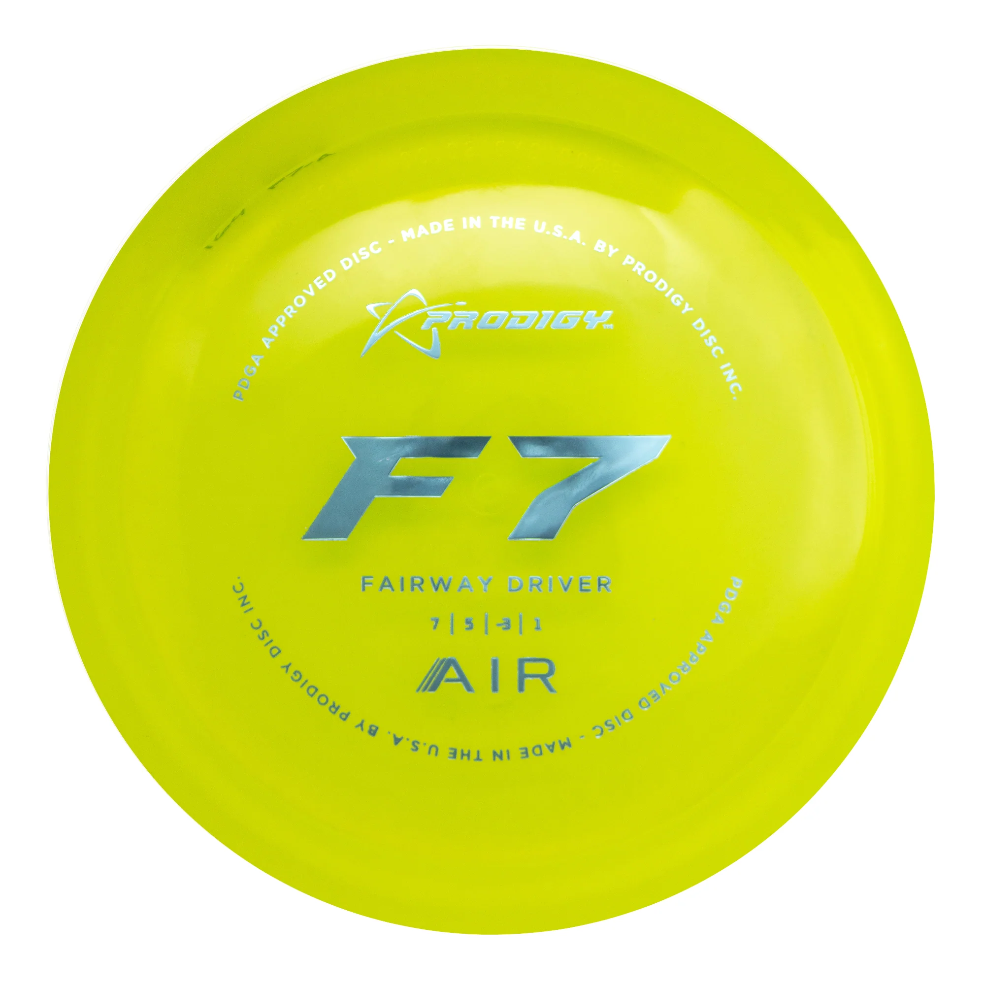The Prodigy Disc F7 is a medium speed, understable fairway driver with substantial glide. It is a great choice for recreational and beginner players. It is also excellent for turn-over shots and rollers.