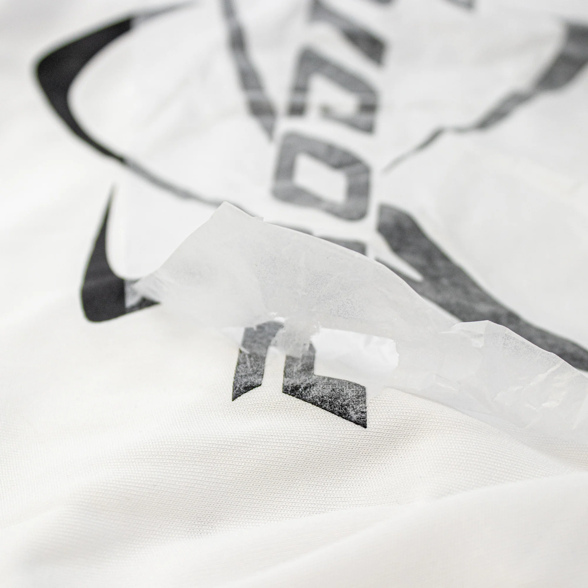 The hot summer sun got to these when they were originally shipped, which caused the tissue paper protecting the logo to stick to the material (pictured). This will leave some residue on the logo, but washing it should take some of it off. These are still high quality, comfortable performance shirts. This small defect is your gain, as we are putting these on clearance with NO RETURNS OR EXCHANGES.